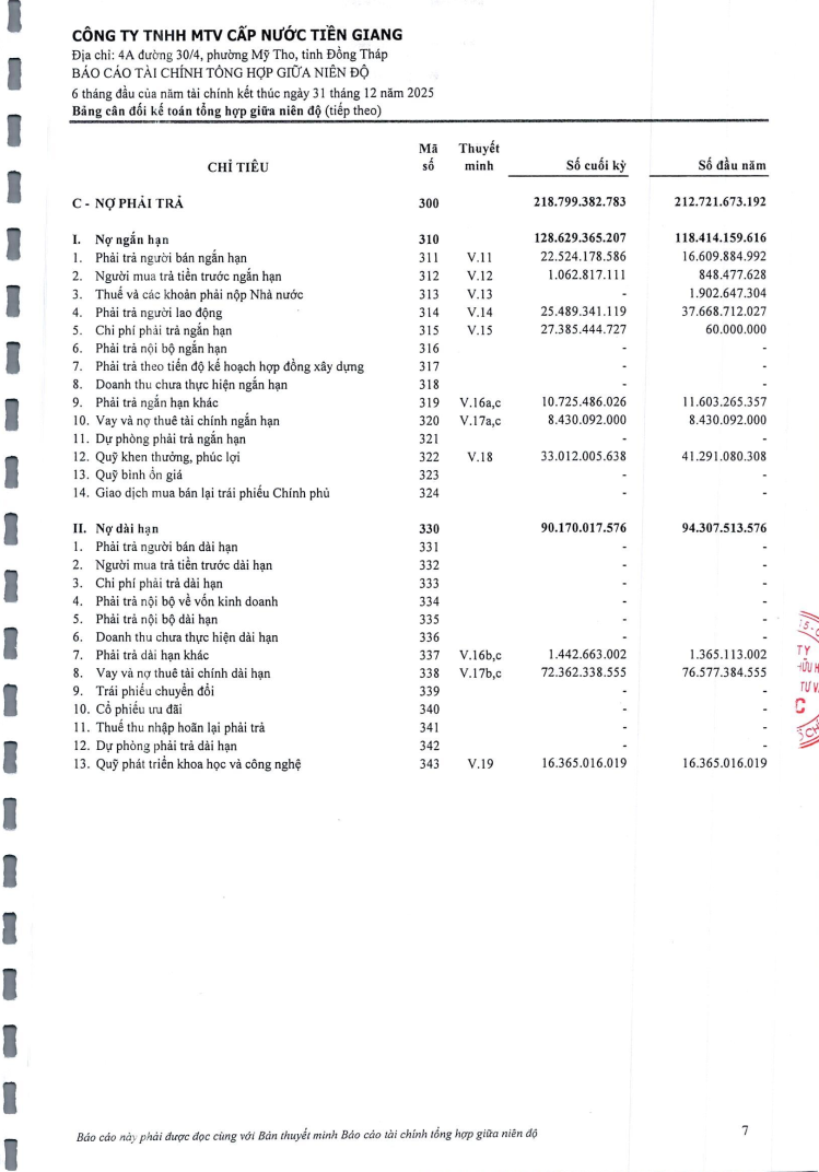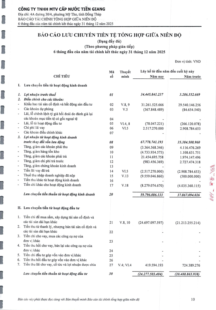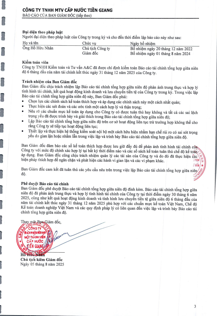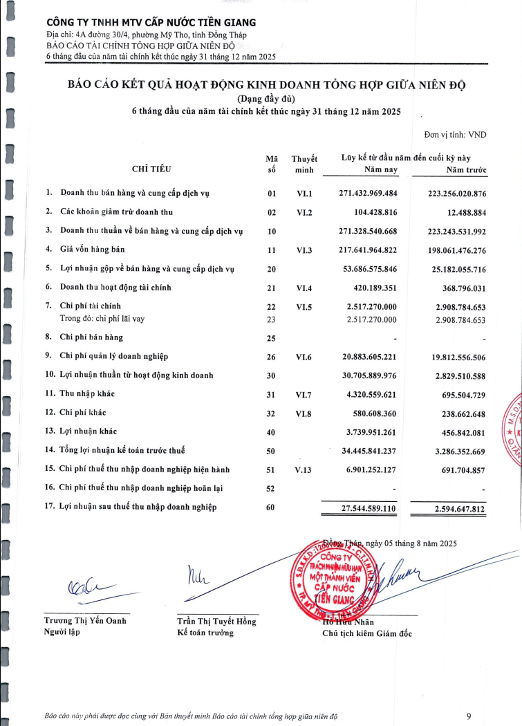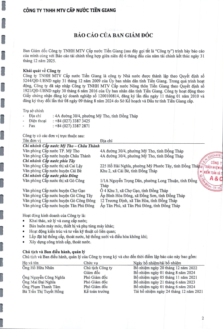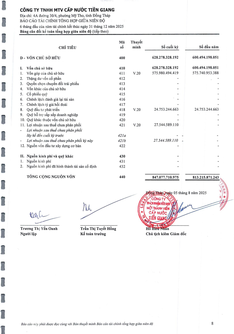 Báo cáo quyết toán 6 tháng đầu năm 2025 công ty TNHH MTV Cấp nước Tiền Giang