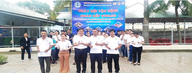Đ/c Phạm Thanh Tâm - Ủy viên Ban Thường vụ Đảng ủy - Phó Giám đốc Công ty phát biểu khai mạc và khẳng định: Trong những năm qua, được sự quan tâm lãnh đạo, chỉ đạo của Đảng ủy, Ban Giám đốc Công ty. Công đoàn cơ sở đã phối hợp tốt với Chi đoàn thanh niên, Cựu chiến binh thực hiện tốt công tác tuyên truyền các chủ trương của Đảng, Chính sách, pháp luật của Nhà nước và công tác chăm lo, bảo vệ quyền lợi, ích chính đáng cho đoàn viên, hội viên, người lao động, phong trào VHVN - TDTT để rèn luyện sức khỏe, nâng cao đời sống, vật chất tinh thần và phúc lợi cho đoàn viên - NLĐ, tạo sân chơi lành mạnh để đoàn viên - NLĐ tham gia tích cực. Từ những phong trào VHVN – TDTT cho đoàn viên - NLĐ ngoài thắt chặt tình cảm đồng nghiệp cúng với sự gắn bó, giúp đỡ nhau trong công tác để hoàn thành tốt nhiệm vụ được giao. Nhân dịp Kỷ niệm 80 năm Ngày Cách mạng tháng Tám thành công (19/8) và Quốc khánh nước CHXHCN Việt Nam (02/9), Đảng ủy, Ban Giám đốc Công ty tổ chức Ngày hội vận động - Đoàn kế TIWACO đã thu hút 110 đoàn viên tham gia 05 trò chơi như; Nhảy bao bố tiếp sức, chuyền nước; Đi hia vạn dặm; Đưa bóng về thành; Dẫn nước về làng; Cướp cờ nước gắn với Kỷ niệm 96 năm Ngày thành lập Công đoàn Việt nam (28/7) được tổ chức tại đường Hoàng Sa, Phường Mỹ Tho, tỉnh Đồng Tháp và phát động phong trào thi đua yêu nước về phong trào Quy tắc ứng xử, Văn hóa Doanh nghiệp, Dân vận khéo, thực hành tiết kiệm, chống lãng phí, sản xuất nước đạt chất lượng, chống thất thoát nước “Lao động giỏi”, “Lao động sáng tạo”, tăng năng suất lao động để hoàn thành và chỉ tiêu kế hoạch SXKD được UBND tỉnh giao và thi đua lập nhiều thành tích chào mừng Đại hội Đảng các cấp tiến tới Đại hội đại biểu toàn quốc lần thứ XIV của Đảng.